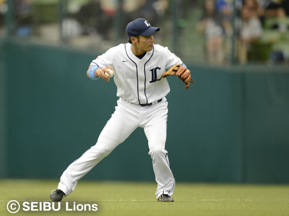 昨日に続きスタメン出場の林崎が軽快にゴロをさばく