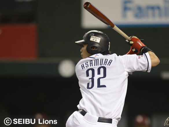 4番 浅村 右安 ライトへのヒットを放つ 1塁 |