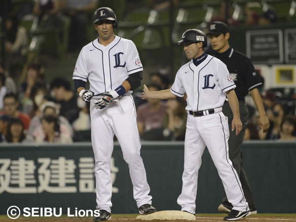 3番 栗山 四球 外角の真っ直ぐを見送り四球を選ぶ 1塁 |