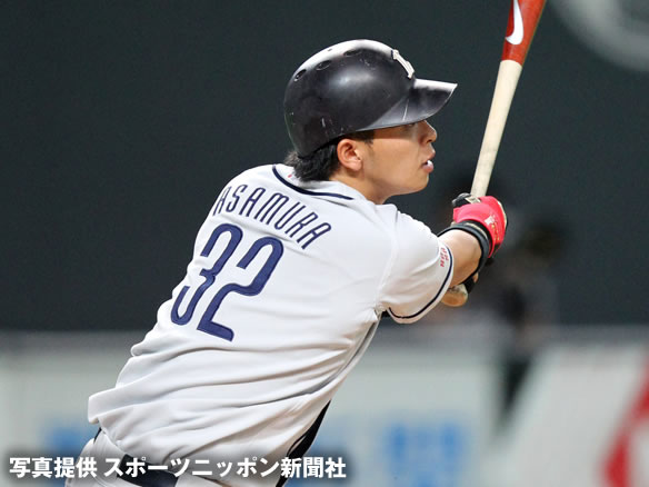 4番 浅村 右中二 センターへタイムリーツーベース!4番の一振りで逆転への流れを一気につかむ! 日2-1西 2塁 ![]() 2