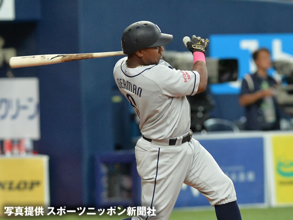 1番 ヘルマン 左安 内角の真っ直ぐをレフトへ打ってヒット 1,3塁 |