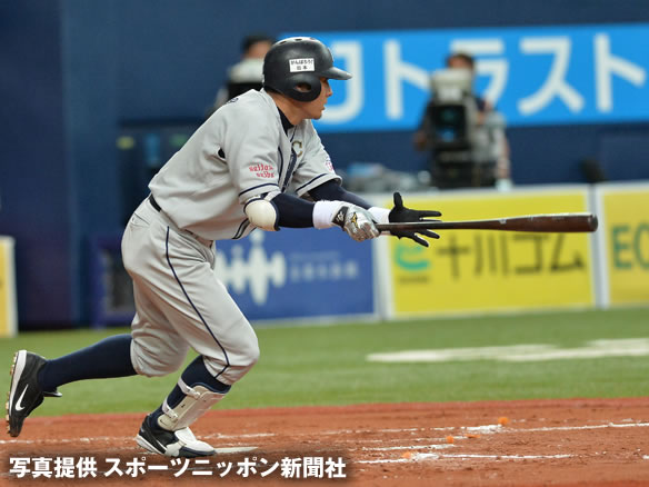 3番 栗山 中安 センターへのヒットを放つ 1塁 |
