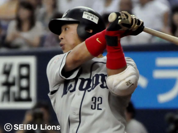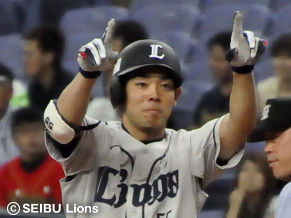 3番 栗山 右安 ランナー2塁の2-1からライトへのタイムリーヒットでライオンズ先制!昨日1,000試合出場を達成した栗山が甘く入ったボールを見逃さず、ヘルマンを本塁へかえす! オ0-1西 1塁 ![]() 0