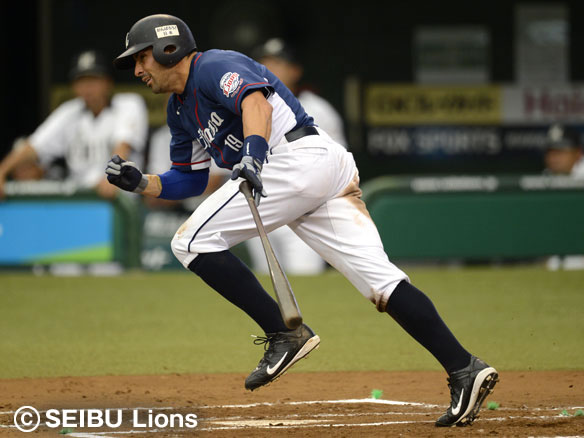 投手 大嶺祐 6番 スピリー 中安 センターへのヒットを放つ 1塁 |