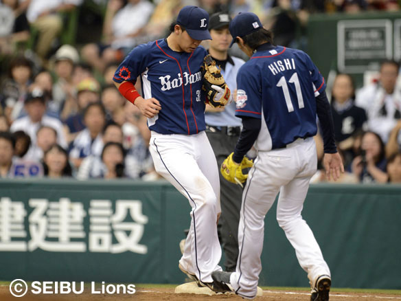 投手 岸 守備交代:ライト大崎 守備変更:熊代ライト→レフト |