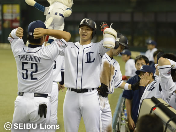 5番 秋山 四球 一度もバットを振ることなくフォアボールを選ぶ 1塁 |