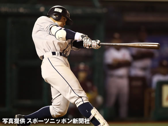 4番 浅村 右安 ライトへのヒットを放つ 1塁 |