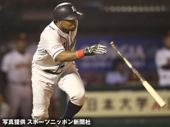 投手 斎藤 6番 スピリー 左安 レフトへのヒットを放つ 1塁 |
