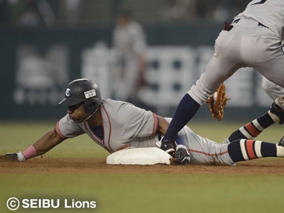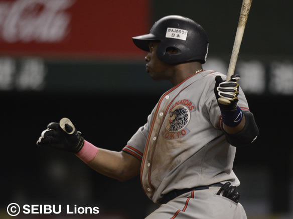 5番 バルディリス 左安 レフトへのヒットを放つ 1塁 |