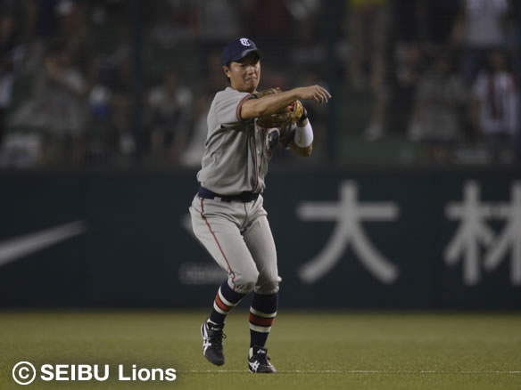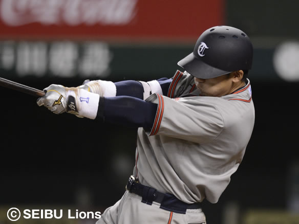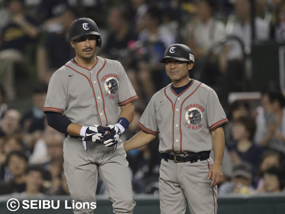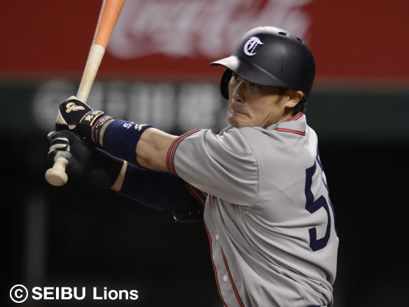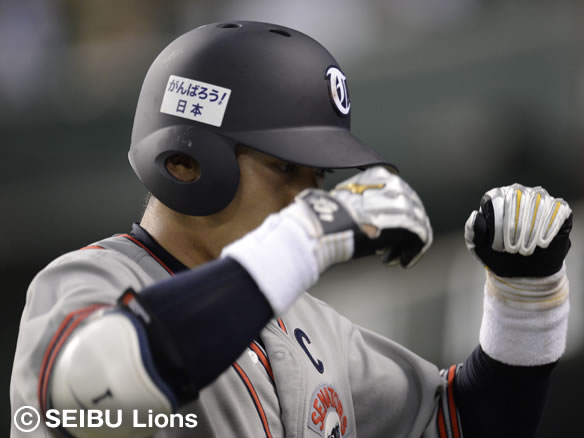 3番 栗山 右本 2ランホームラン!劣勢のチームに勇気を与える、キャプテンの一振り!弾丸のようなライナーをライトスタンドに運んだ! 西2-5オ ![]() 2