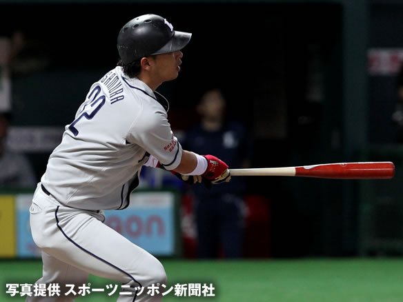 3番 長谷川 右安 2アウト2,3塁の2-2からライトへのタイムリーヒット ソ5-1西 1塁 ![]() 5