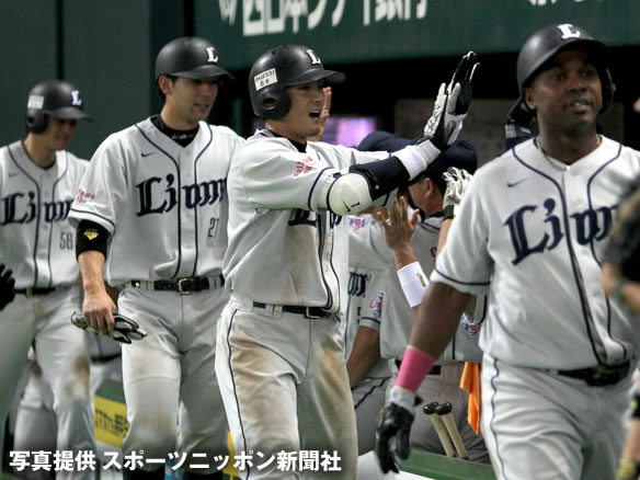 3番 栗山 右本 2アウト満塁の3-2からライトスタンドへの逆転満塁ホームラン!劇的な展開に、ベンチの渡辺監督も興奮の表情を見せる! ソ5-6西 ![]() 5