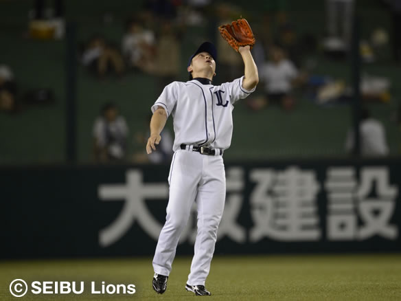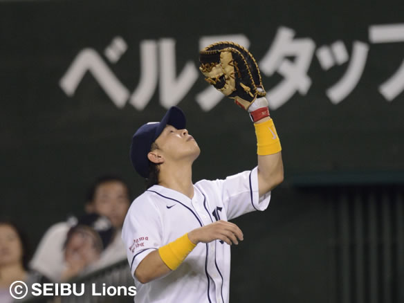 堅守を見せている秋山の打球はファーストに捕球されてしまう