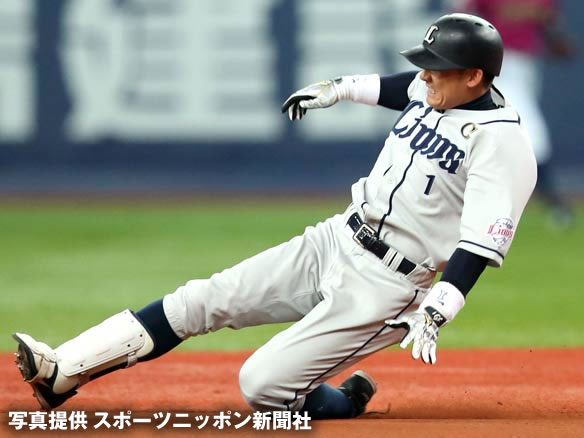 投手 佐藤達 3番 栗山 左安 レフトへのヒットを放つ 1塁 |