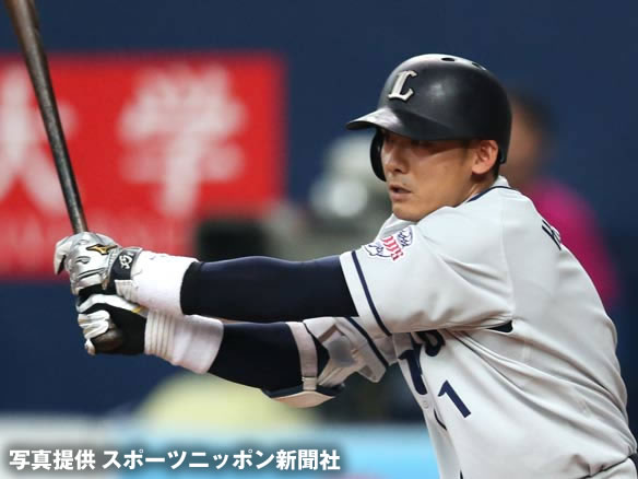 投手 岸 1番 平野恵 右翼二 ライトへのツーベース |