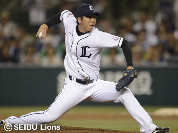9番 炭谷 四球 外角のスライダーを見送りフォアボールを選ぶ 1,2塁 |