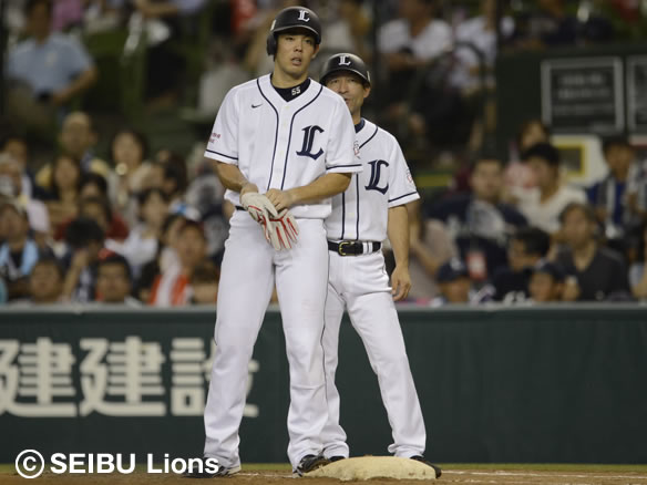 6番 大崎 左安 レフトへのヒットで出塁 1塁 |