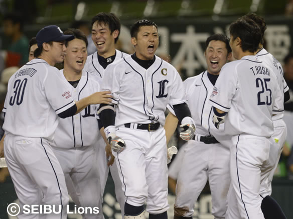 3番 栗山 右安 ランナー2,3塁の1-1からライトへのサヨナラヒット! 西12-11楽 ゲームセット ![]() 12