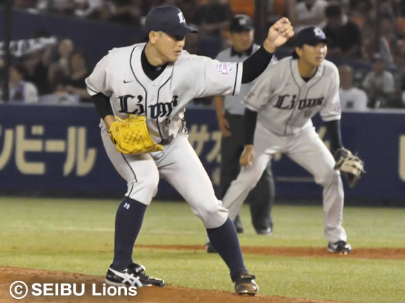 3番 栗山 四球 高めの落ちる球を見送りフォアボールを選ぶ 1,2塁 |