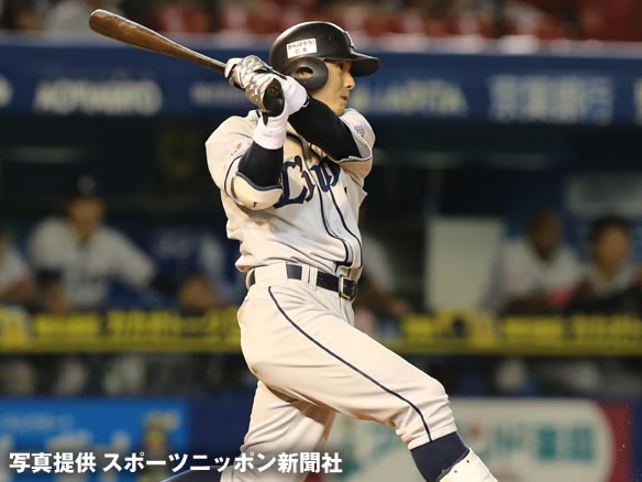 3番 井口 左安 レフトへのヒットを放つ 1塁 |