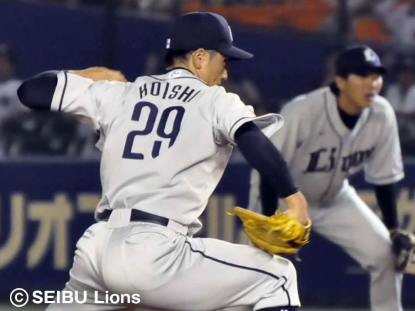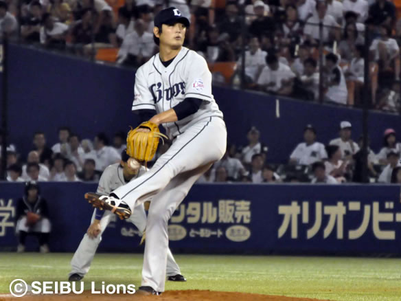 投手 高橋朋 投手交代:高橋→涌井 守備変更:熊代→レフト |
