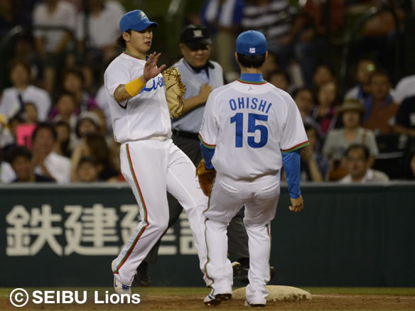 投手 大石 投手交代:大石→サファテ 守備変更:ヘルマンDH→サード 守備変更:坂田→ライト 守備変更:浅村ファースト→セカンド 守備変更:木村ライト→ファースト 守備変更:鬼崎セカンド→ショート ライオンズDH解除 |