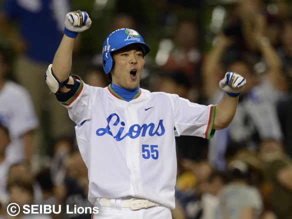 5番 秋山 右安 0アウト満塁の1-0からライトへのタイムリーヒットでライオンズ同点!サヨナラのチャンスは続き、スタンドのボルテージも一気に高まる! 西2-2オ 満塁 ![]() 2