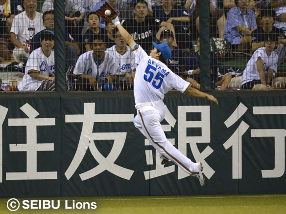 秋山は伊藤の飛球を背走しランニングキャッチ!