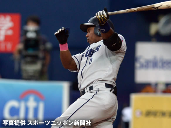 4番 李大浩 左中二 カウント1-2からセンターへの先制タイムリーツーベース オ1-0西 2塁 ![]() 1