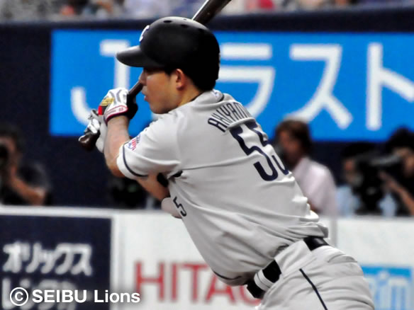 5番 バルディリス 左安 レフトへのヒットを放つ 1塁 |