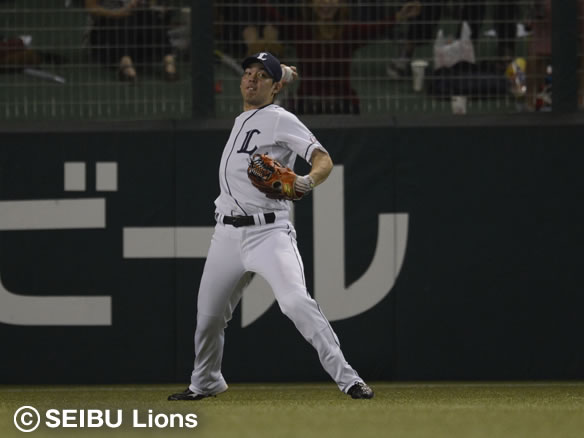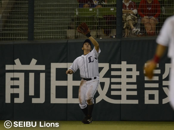 大きなフライが放たれるも秋山が堅守でしっかりキャッチする