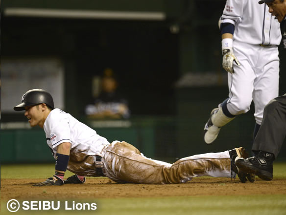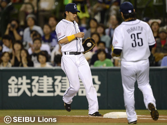 牧田は細川の小フライを捕球し素早く3塁へ送球!