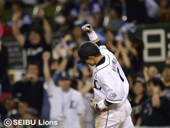 栗山は勝ち越しの一発を放ち拳を突き上げる!