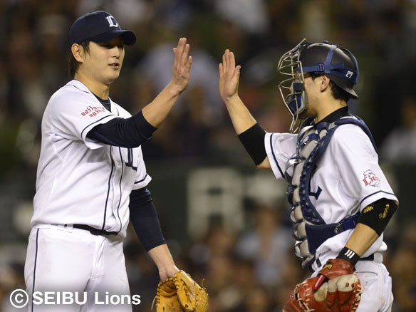 涌井は最後を締め炭谷と勝利のハイタッチ!