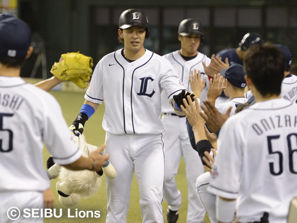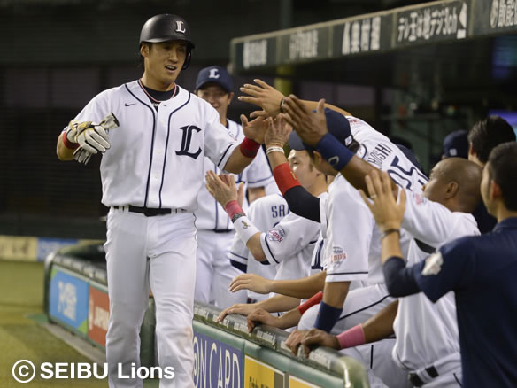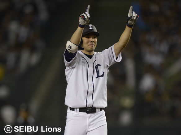 5番 秋山 左越二 2アウト1,2塁の2-0からレフトの頭上を越える2点タイムリーツーベース!ライオンズの猛打が止まらない! 西9-2ロ 2塁 ![]() 9