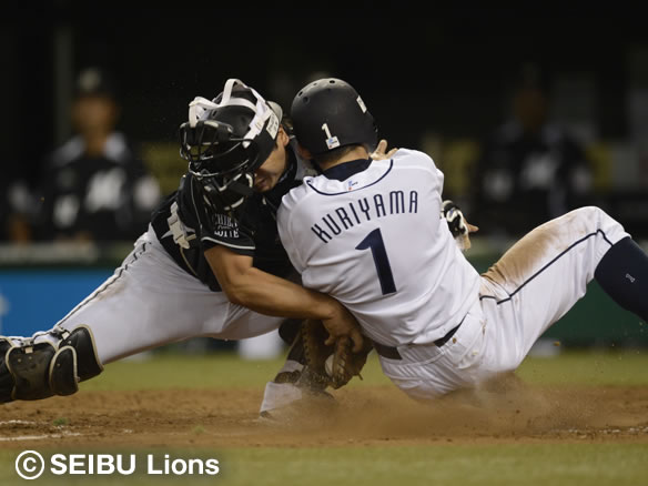 栗山の必死の走塁は惜しくもアウト