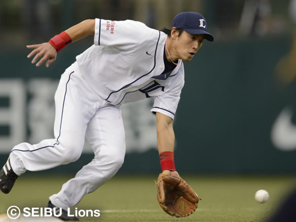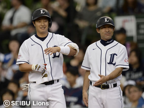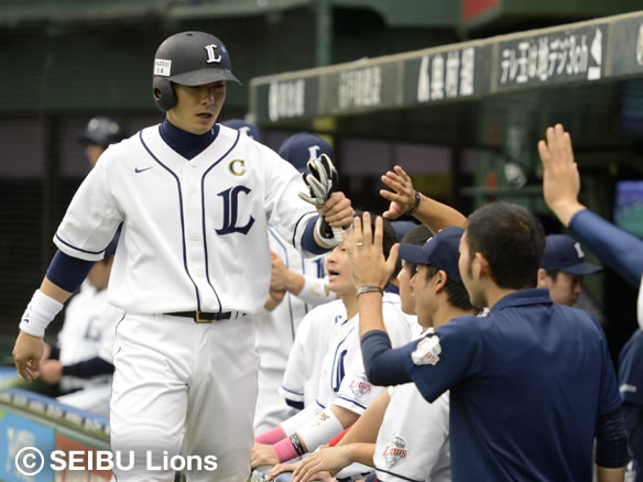 3番 栗山 左翼二 ランナー2塁の2-1から外角寄りのストレートを流し打ちしたライナーは、レフト線を襲うタイムリーツーベースに!キャプテンの一打で先制に成功! 西1-0ロ 2塁 ![]() 1
