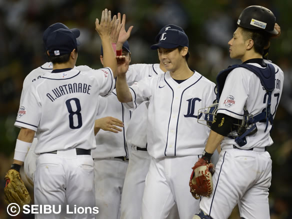 3番 栗山 右本 ランナー1,2塁の1-1からライトスタンドへの3ランホームラン!!先制タイムリーを放っているキャプテンが、今度は相手を大きく突き放す一発を放つ! 西8-0ロ ![]() 8