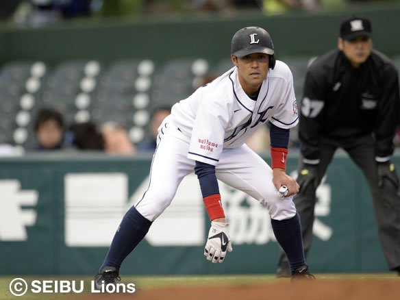 先頭打者の栗山がヒットを放ちチャンスメーク! 切り込み隊長として、その役割を果たします! |