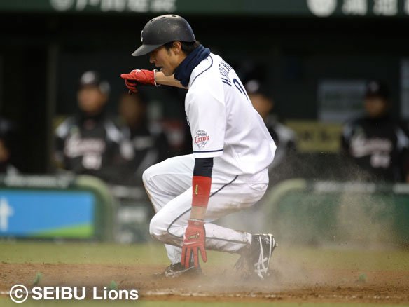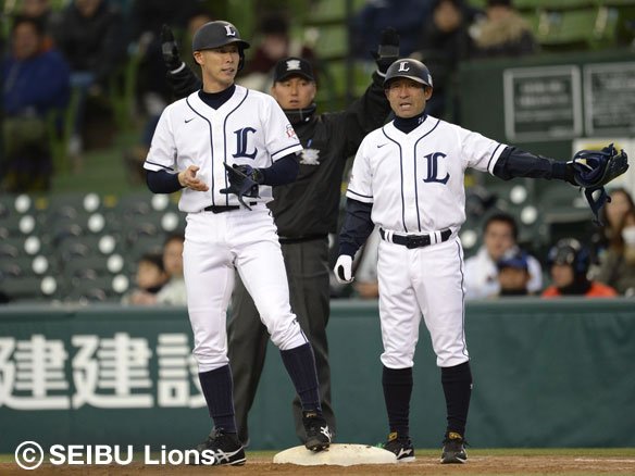 炭谷のチーム初ヒットを口火に満塁のチャンスを作り、秋山の2点タイムリーでこれまで打ちあぐねていた成瀬を捉えました! |
