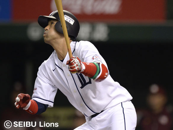 5番 ユーキリス 左安 レフトへのヒットで出塁 1塁 |