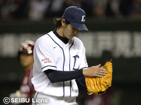 投手 岸 9番 聖澤 左飛 内角の真っ直ぐを打つもレフトフライ 1アウト |