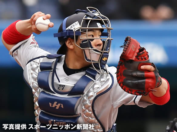 相手の策を読み炭谷は盗塁を阻止