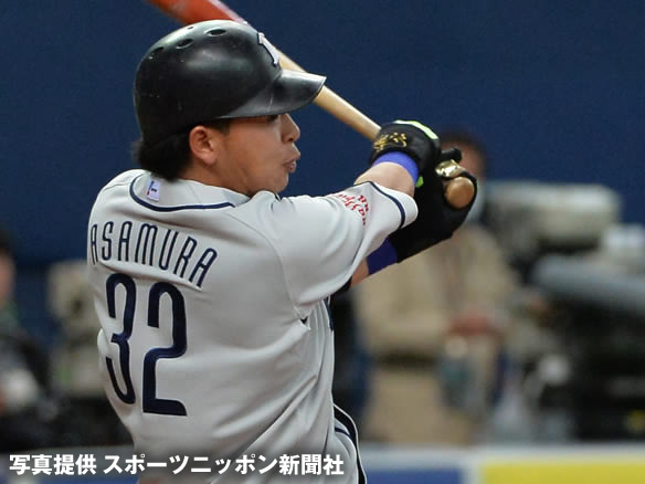 4番 浅村 左安 レフトへのヒットを放つ 1塁 |