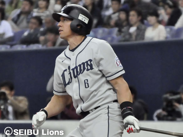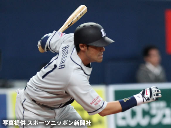 2番 平野恵 左安 レフトへのヒットを放つ 1塁 |