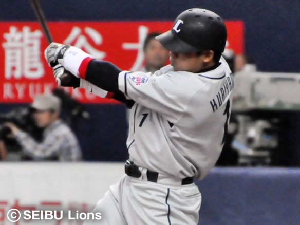 1番 栗山 右中二 ライトへの二塁打 2塁 |