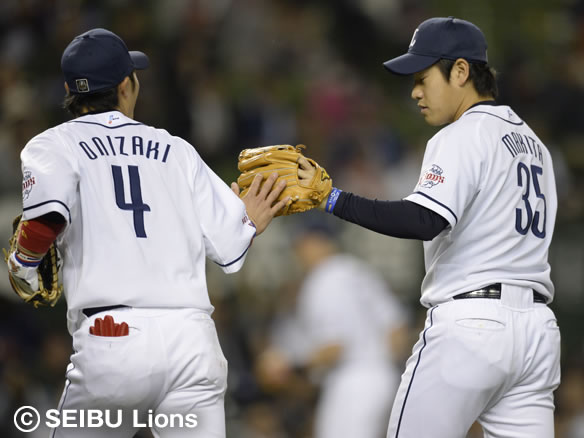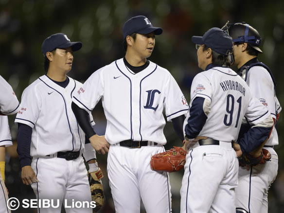 投手 牧田 ピッチャー牧田に代わって十亀がマウンドにあがる |