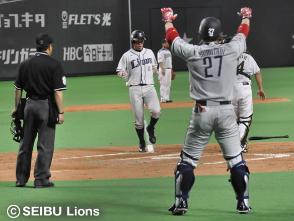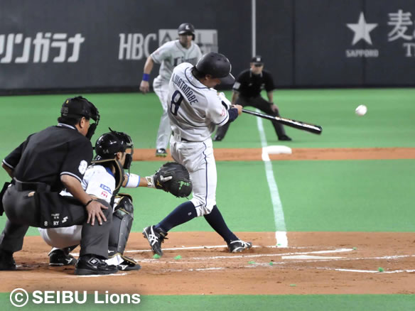 7番 渡辺直 左翼二 1アウト3塁の1-0からレフトへのタイムリーツーベース!渡辺の今季初打点でライオンズ先制! 日0-1西 2塁 ![]() 0