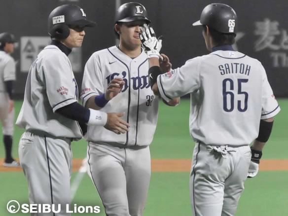 1番 陽 右中本 2-1から右中間へのホームランでファイターズ同点 日3-3西 ![]() 3