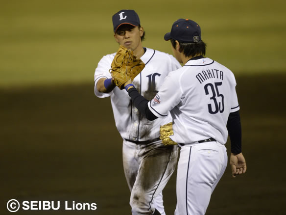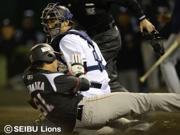 投手 牧田 4番 今江 二飛失 浅村(二)の落球により出塁する 1塁 |
